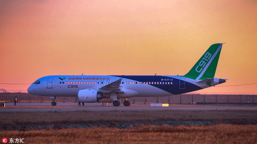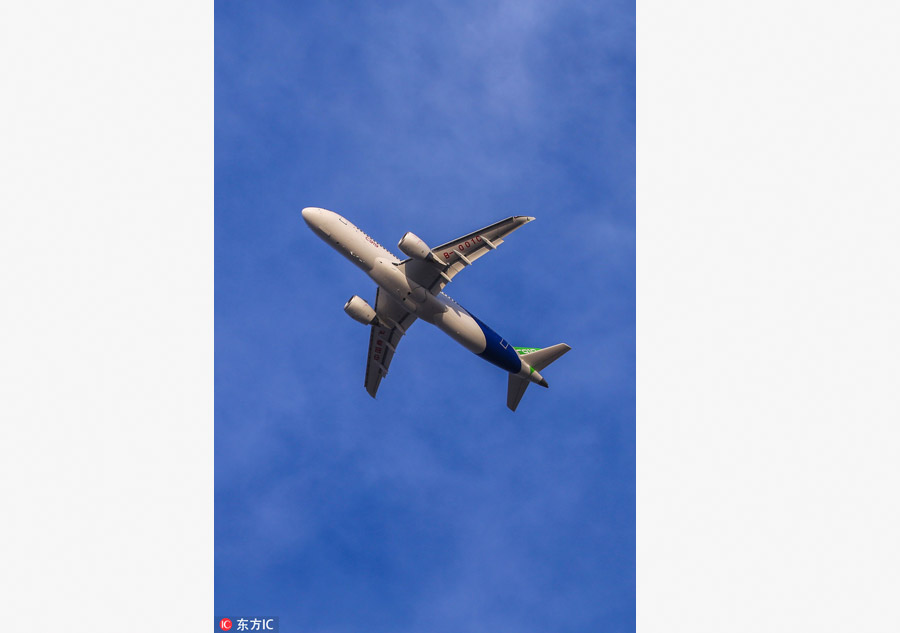 The second C919 aircraft takes off on its first flight of 2018 on Jan 14 in Shanghai. It made its debut flight on Dec 17 in Shanghai. The first C919, China's homegrown narrow-body jet, took off on its launch flight at Pudong International Airport in Shanghai on May 5, 2017.[Photo/IC]