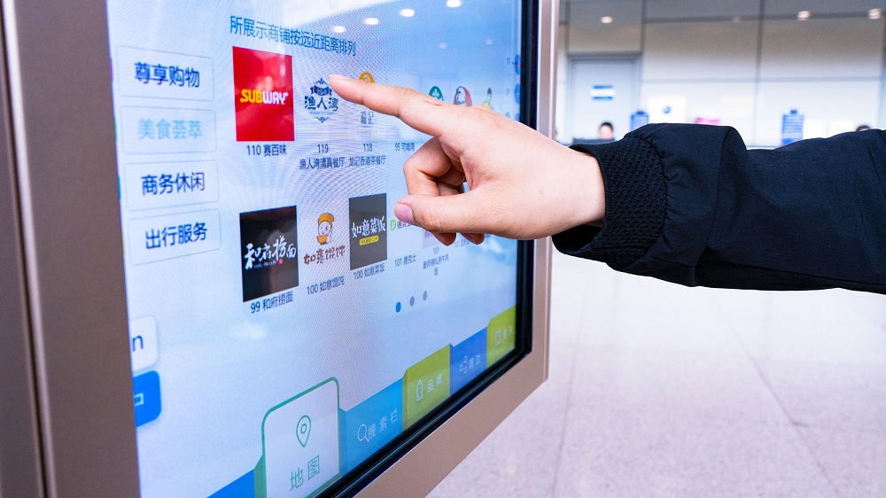 Passengers can simply walk up to the digital display and start tapping, finding out the location of stores and other information including business hours, recommended products and special offers. With a multiscreen setup, the facility allows simultaneous operation during rush hours.