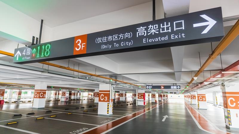 Located 1.5 kilometers north of Pudong's two terminals, P4 is composed of A, B, C and D buildings, with each building having seven floors, and a total of 5,354 parking spaces, including 112 barrier-free spaces. At present, buildings C and D have been available first and can hold 2,732 cars.