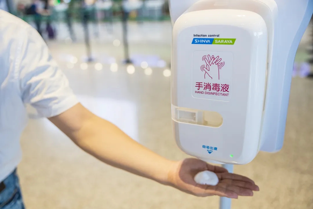 A variety of effective protective materials equipment and disinfection procedures have been strengthened at Hongqiao airport. All on-site staffs have to wear masks and those who need to contact passengers are urged to carry out self-protection measures including wearing gloves, hats, and eyewear. Other efforts to prevent and control the epidemic include body temperature monitoring and disinfecting all work and rest areas. All the check-in counters at the airport have hand sanitizers available for passengers. The staffs at the manual counters for security inspection and unpacking of luggage must disinfect their hands every ten minutes to provide a safer environment for passengers.