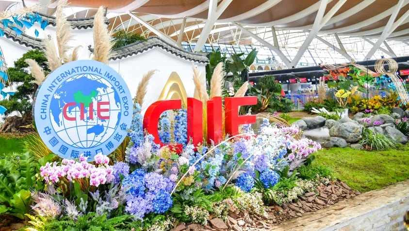 The Pudong and Hongqiao international airports both erected statues of the CIIE mascot Jinbao at their departure and arrival areas, and each airport installed nearly 60 large and medium-sized CIIE-themed green landscapes and fresh flowers.