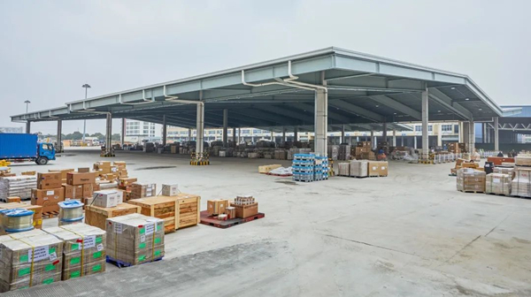 A venue covering some 10,000 square meters is built for the disinfection of imported goods. [Photo/WeChat account: gh_01c0f79320c5]