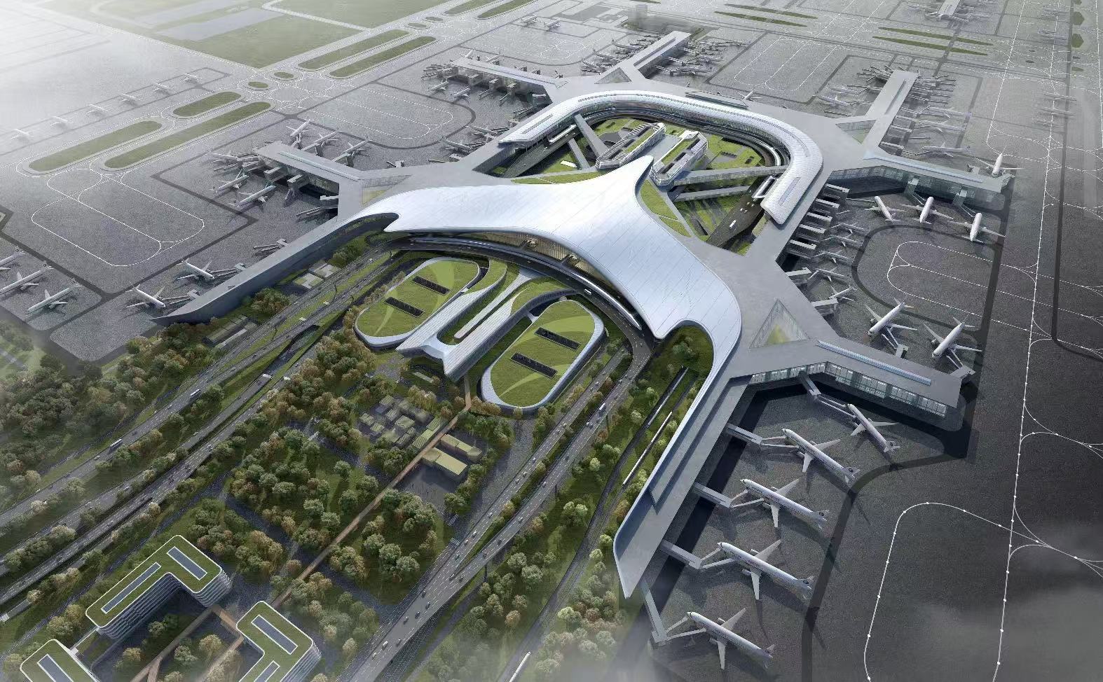 A digital rendering of Terminal 3 at Shanghai Pudong International Airport. [Photo/WeChat ID: gh_01c0f79320c5]