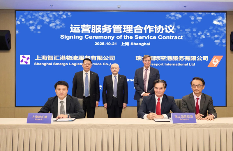 The signing ceremony on Oct 21 was attended by senior executives from AVINEX, China Eastern Airlines, and Swissport, marking a key step in strengthening Shanghai's international air logistics capabilities.