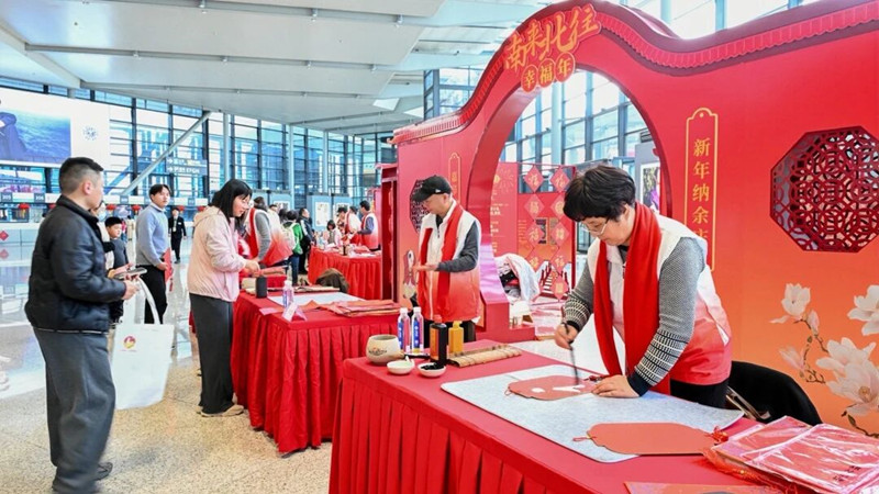 The airport also hosted a public calligraphy event ahead of the holiday as part of the city's spring blessing campaign, where calligraphers wrote auspicious phrases for travelers to carry home.