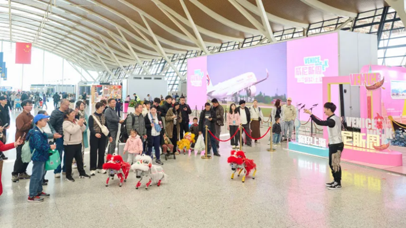 The "Hello, Shanghai" Venice Week global sister airports exhibition, organized by Shanghai Airport Authority (AVINEX) and Italy's SAVE Group, opened on March 11 at Shanghai Pudong International Airport's T2 Departure Hall.