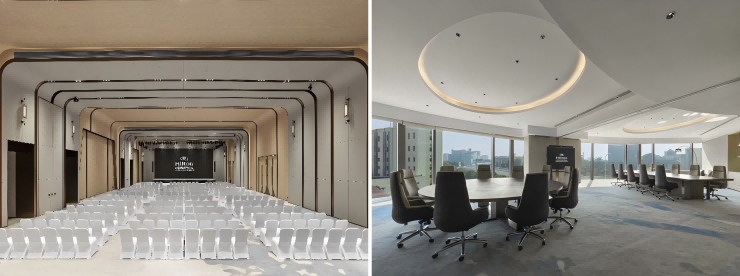酒店拥有总共1300平方米的会议活动空间,包括1间680平方米的无立柱宴会厅高7米、配备有80平方米的嵌入式液晶大屏,1间260平方米的无立柱多功能会议室,满足商务活动、婚礼等多种需求。5间不同大小的独立会议室配备了显示屏和视听设备,为商务旅客提供智慧高效的会务服务。