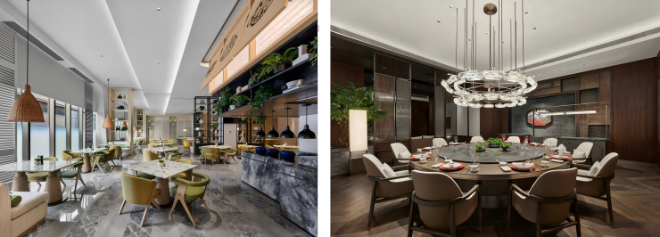 酒店拥有3间风格不同的餐厅,其中厨艺全日制餐厅位于酒店2层,为宾客提供自助早餐、午餐、晚餐等全天候美食服务。御玺中餐厅位于酒店1层,配备有6间独立的包厢区域,提供上海本地特色美食和传统粤式经典。思大堂酒廊位于酒店2层,直通T1航站楼出发大厅,为宾客提供各式鸡尾酒、软饮等饮品,以及中西式点心、下午茶等精美小食。
