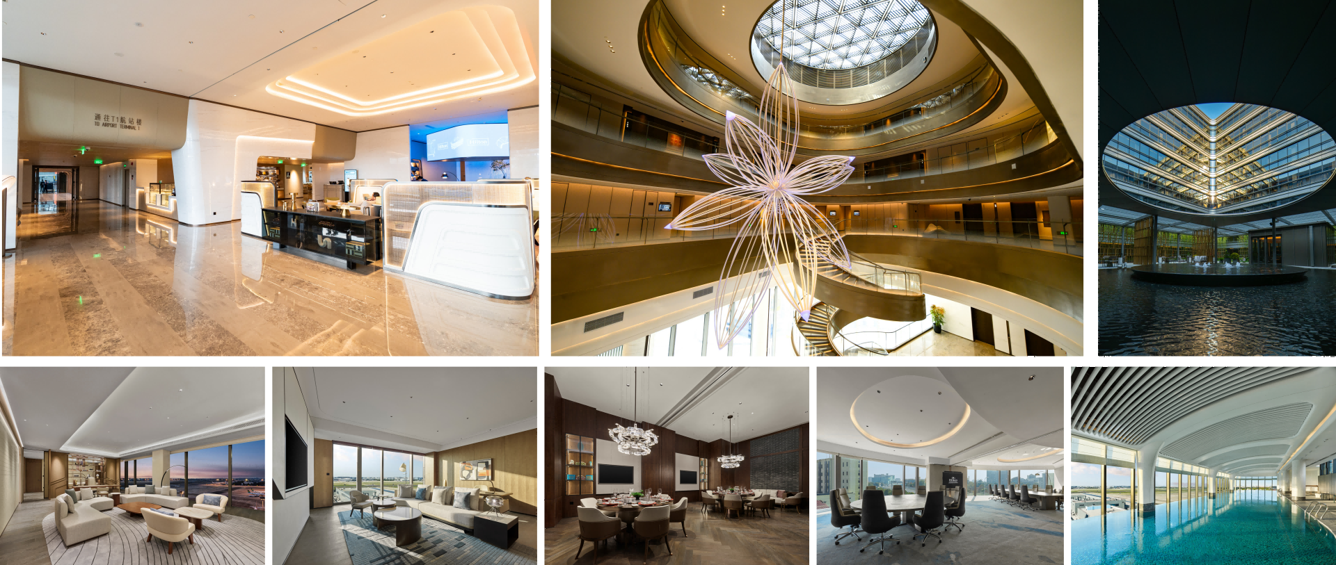 酒店将传统文化与航空元素融入建筑和装修设计,有300间时尚舒适的客房,全景落地玻璃窗让旅客尽览虹桥机场航站楼、机坪和航班起降的独有景观,酒店配备功能齐全、设备先进的会议活动空间、无边际机场景观泳池、24小时开放健身中心,以及3间各具风格的餐厅、酒吧。
