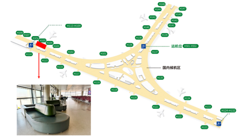 图2. S1国内混流H105登机口附近旅客休息区