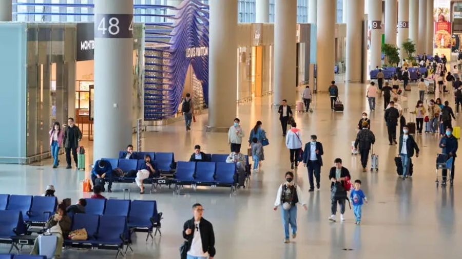 上海机场集团预计,今年“五一”小长假期间,即4月29日至5月3日,浦东、虹桥两大机场航班量将达8844架次,客流量将达146万人次,航班量和客流量分别恢复至2019年同期的84%和87%。