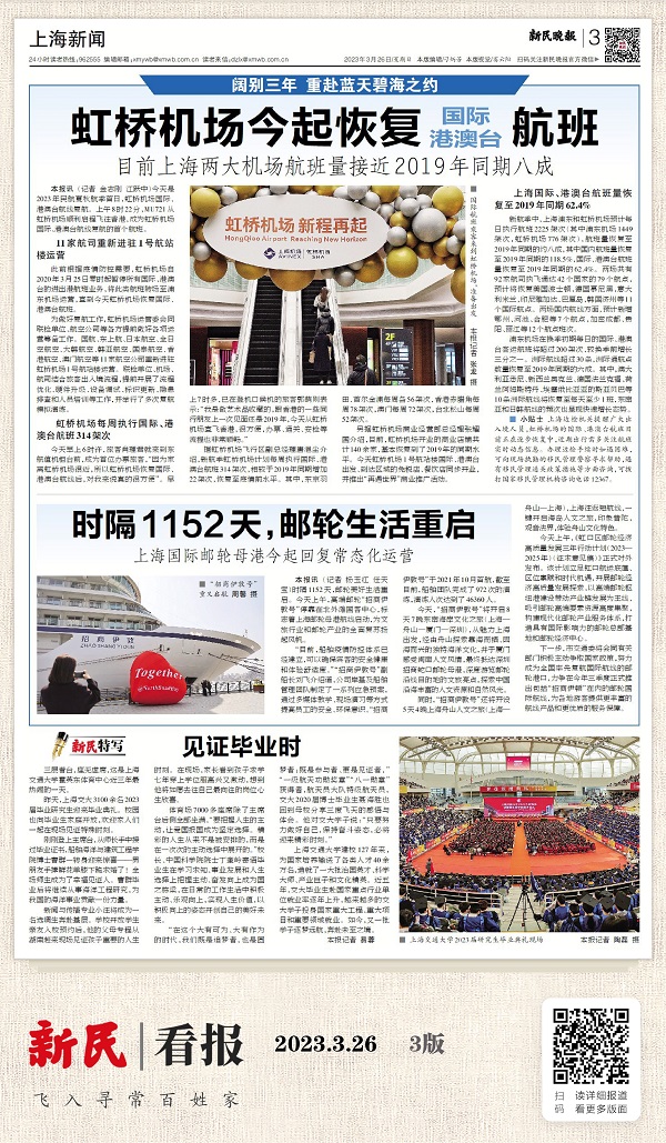 新民晚报:虹桥机场国际、港澳台航线今起复航