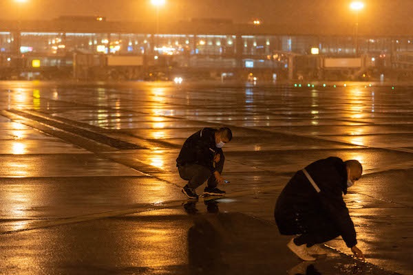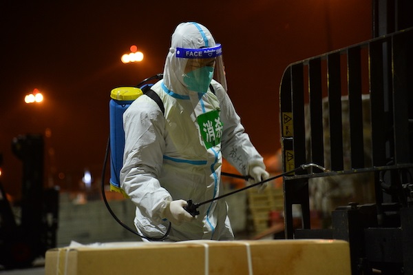 地服完成卸货后,整板卸下来的90多吨货物正在进行外立面消毒。牵引车操作员隔着口罩对着自己医用手套里长时间穿戴已蒙出湿疹的双手哈了一口气,与其说是取暖,倒不如说是自我加油,继续投入到深夜又一轮入境货物处理“接力赛”。最近一个月,浦东机场货运站跑出了进港货物59663吨的好成绩,较上月增长10.36%。