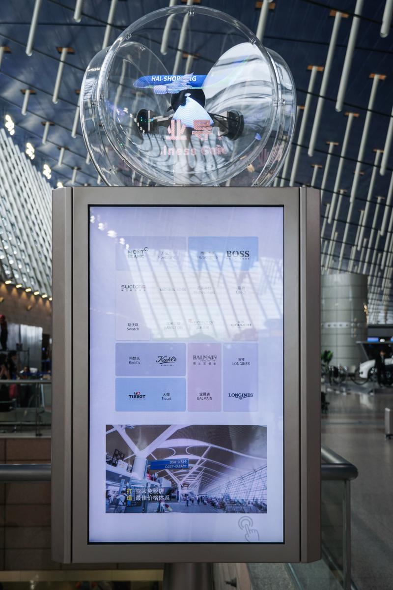 WiFi秒登了,办票、托运、安检验证、登机等都自助了,省下了大把时间用来干嘛呢?那还用说?当然是“买买买”!在上海两场,一大批“神器”已上阵,助你无障无死角搜你所想。在浦东机场T1、T2航站楼公共和候机区域,10座导购屏等你来搜,覆盖了商业、餐饮、休闲服务、外币兑换、出行服务等400余点位,而且每座都是三面屏,3人同搜互不干扰,头顶还有3D全息投影飞机用飞行方向为你指路。