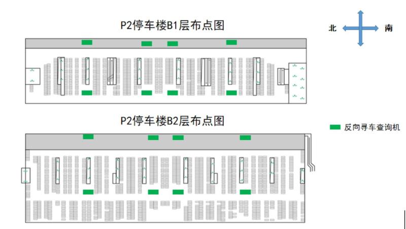 P2停车楼共分布有16台查询机,位置如下: