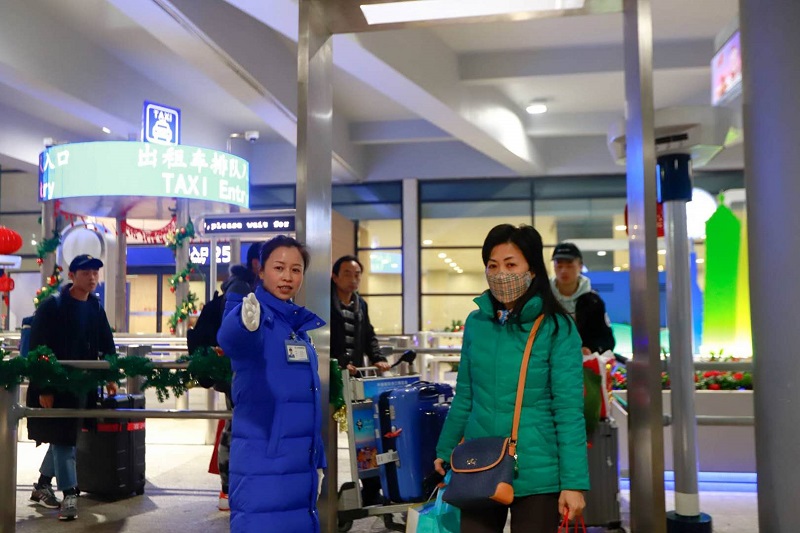 浦东机场出租车站点提高发车效率。(上海机场集团 供图)