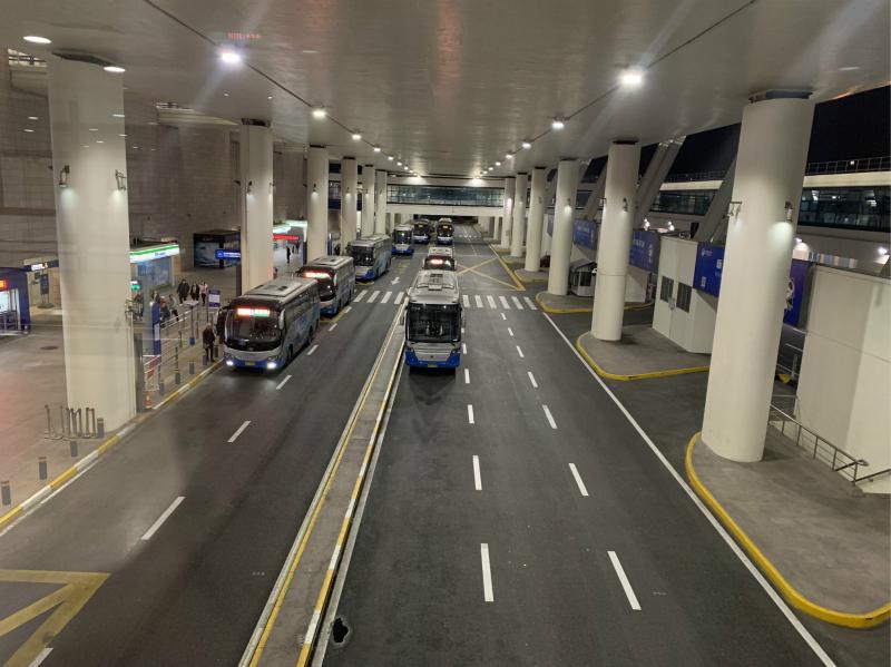 告别行李大使,2时45分,记者来到最后一站,即浦东机场T1出租车站点。在这里,机场巴士守航夜宵线、定制巴士和出租车正彻夜守候。