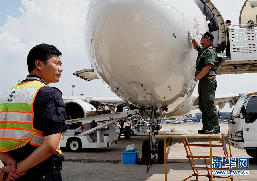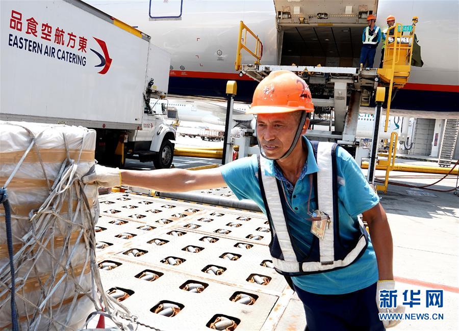 近日,上海市虹桥和浦东两大国际机场停机坪地表温度最高已近70℃,工作在现场的上海机场集团以及各航空公司员工冒着高温酷暑坚守岗位。新华社记者 陈飞 摄