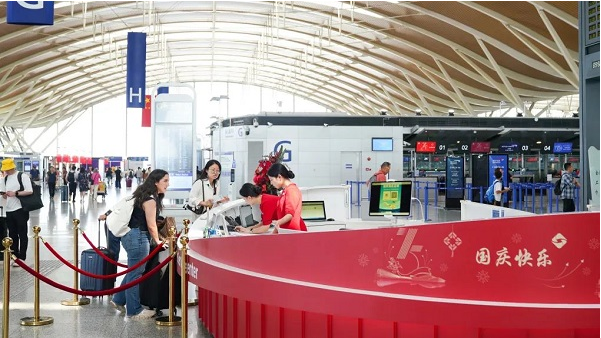9月29日,虹桥机场联合海关、边检、航司等单位,围绕旅客航空出行全流程,发布了“虹桥快线”“虹桥智行”“虹桥易改签”“虹桥行李+”等7大服务产品,并还在2号航站楼推出安检“家庭乐享”服务通道,方便携带儿童的家庭出行旅客便捷过检。浦东机场增设“无托运行李柜台”,在安检待检区加强对不能携带乘机物品的提示宣传,提醒旅客提前自检,进一步提升值机和过检效率。进一步优化首乘旅客、老年人等的特殊旅客服务,除提供全流程引导陪同外,国庆假日期间还为65周岁以上独自出行的老年旅客提供行李优先办理服务。两场的停车场(库)、交通站点加派引导人员,根据客流情况灵活调配停车和出租车资源,更好满足旅客停车和用车需求。协调餐饮商户和便利店铺做好守底航班的服务保障。