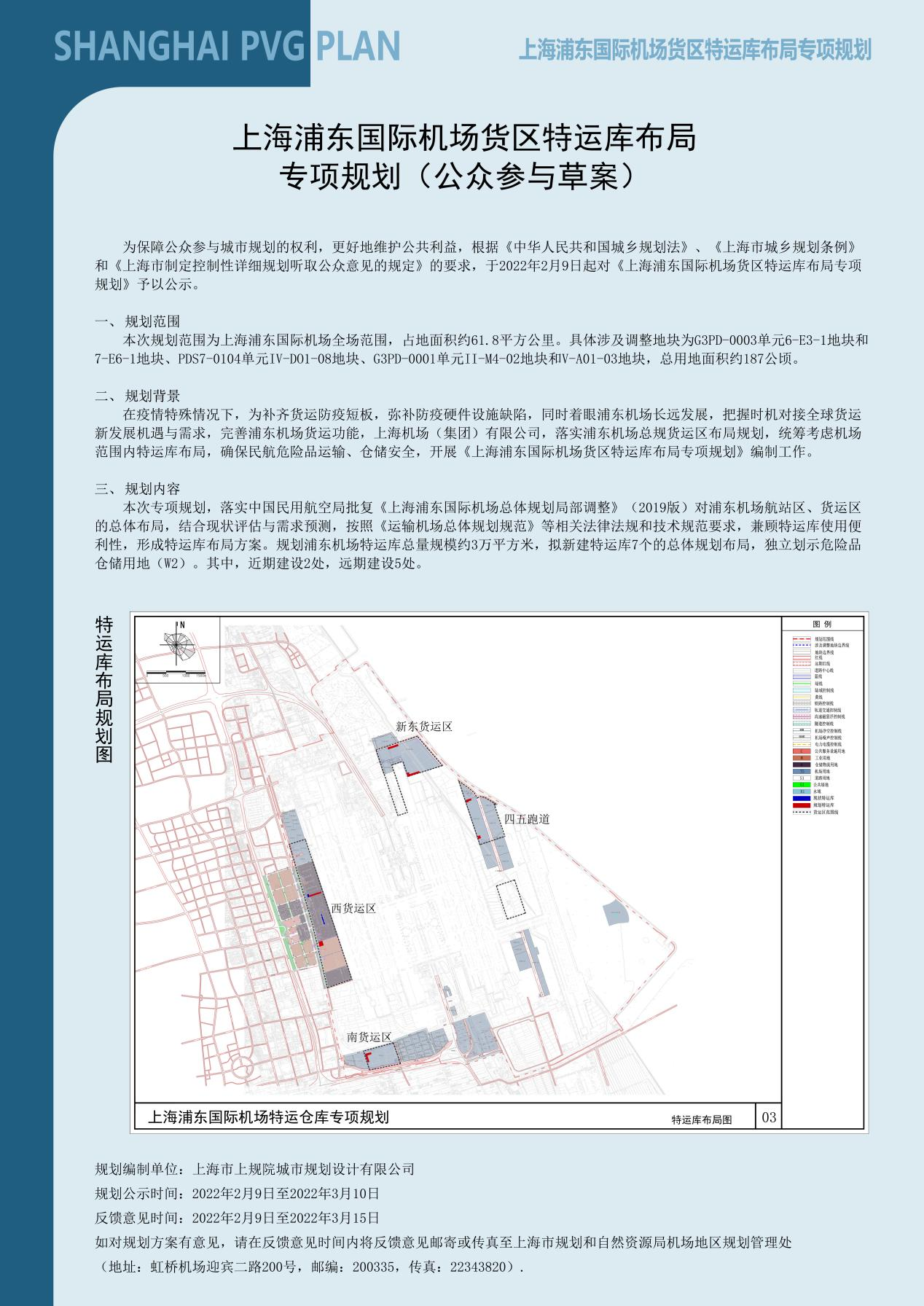 规划名称:《上海浦东国际机场货区特运库布局专项规划》(公众参与草案)