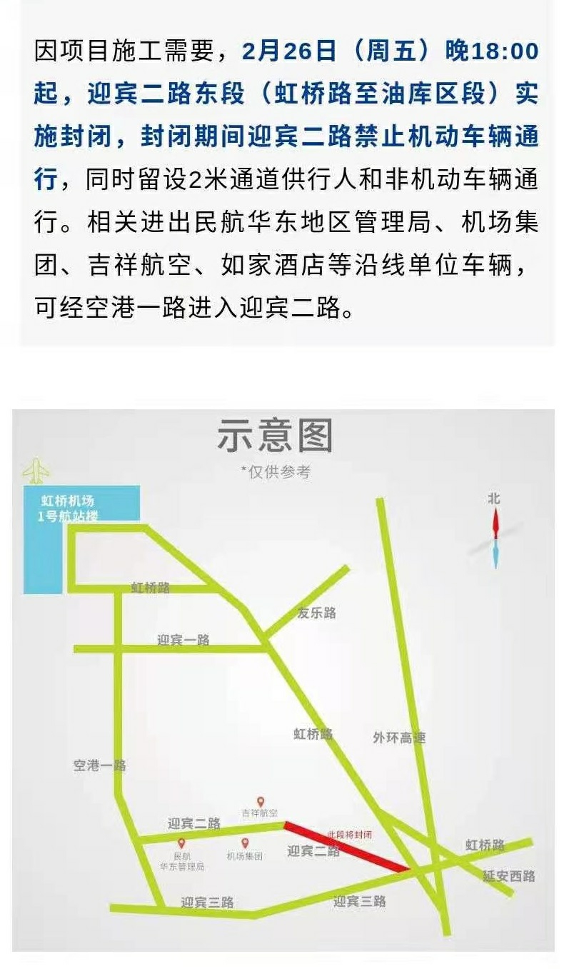 禁止机动车辆通行!迎宾二路东段于2月26日晚18:00起实施封闭