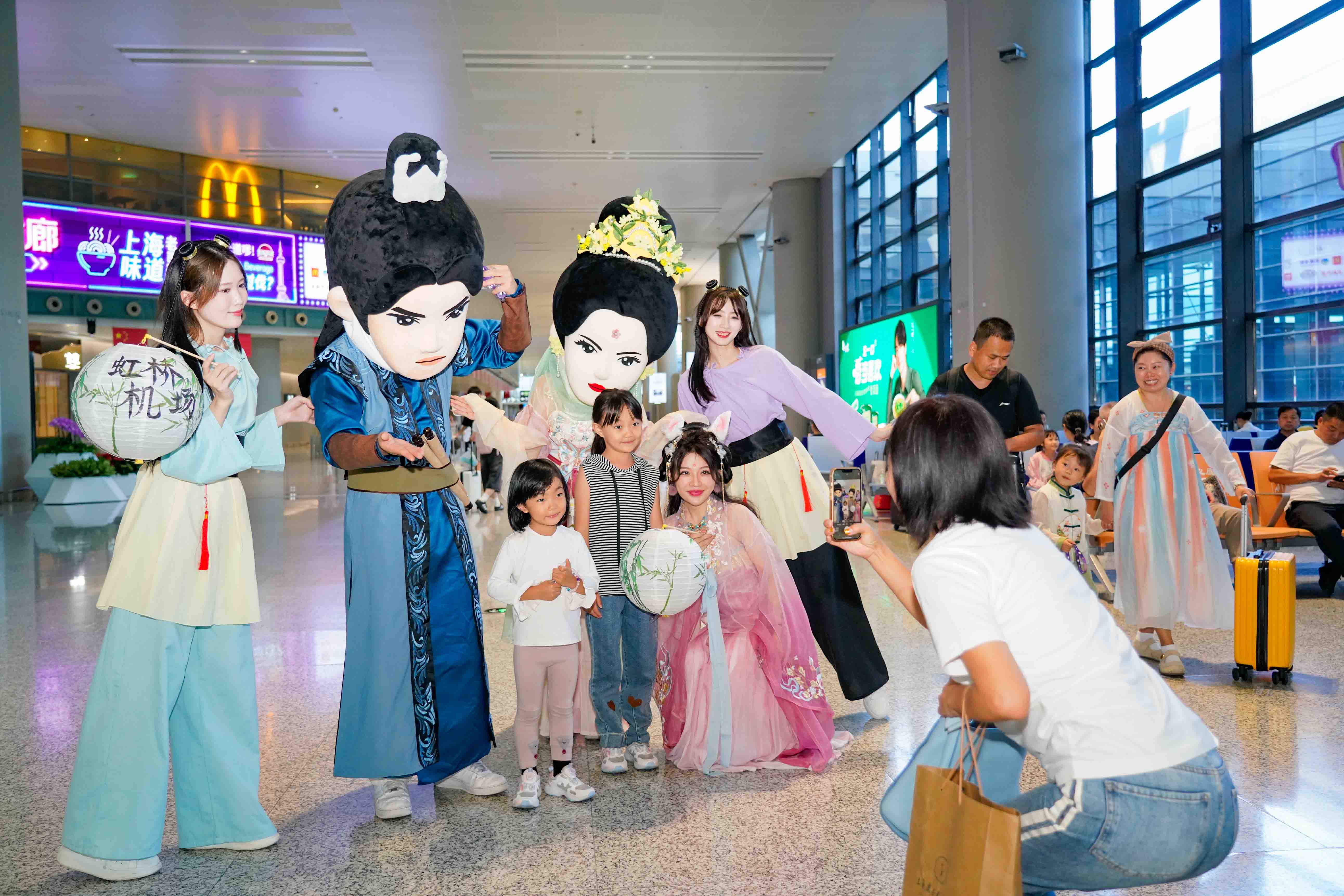 8天的假期带动了出境游、国内游中长线旅游的增长,免签政策扩大效应也让上海成为外国游客最热门目的地。节日里,浦东、虹桥两大机场遍布“中国红”,五星红旗、中国灯笼遍布进场高架、问询值机柜台、安检通道各区域,节日主题打卡点和景观点位吸引旅客驻足打卡。